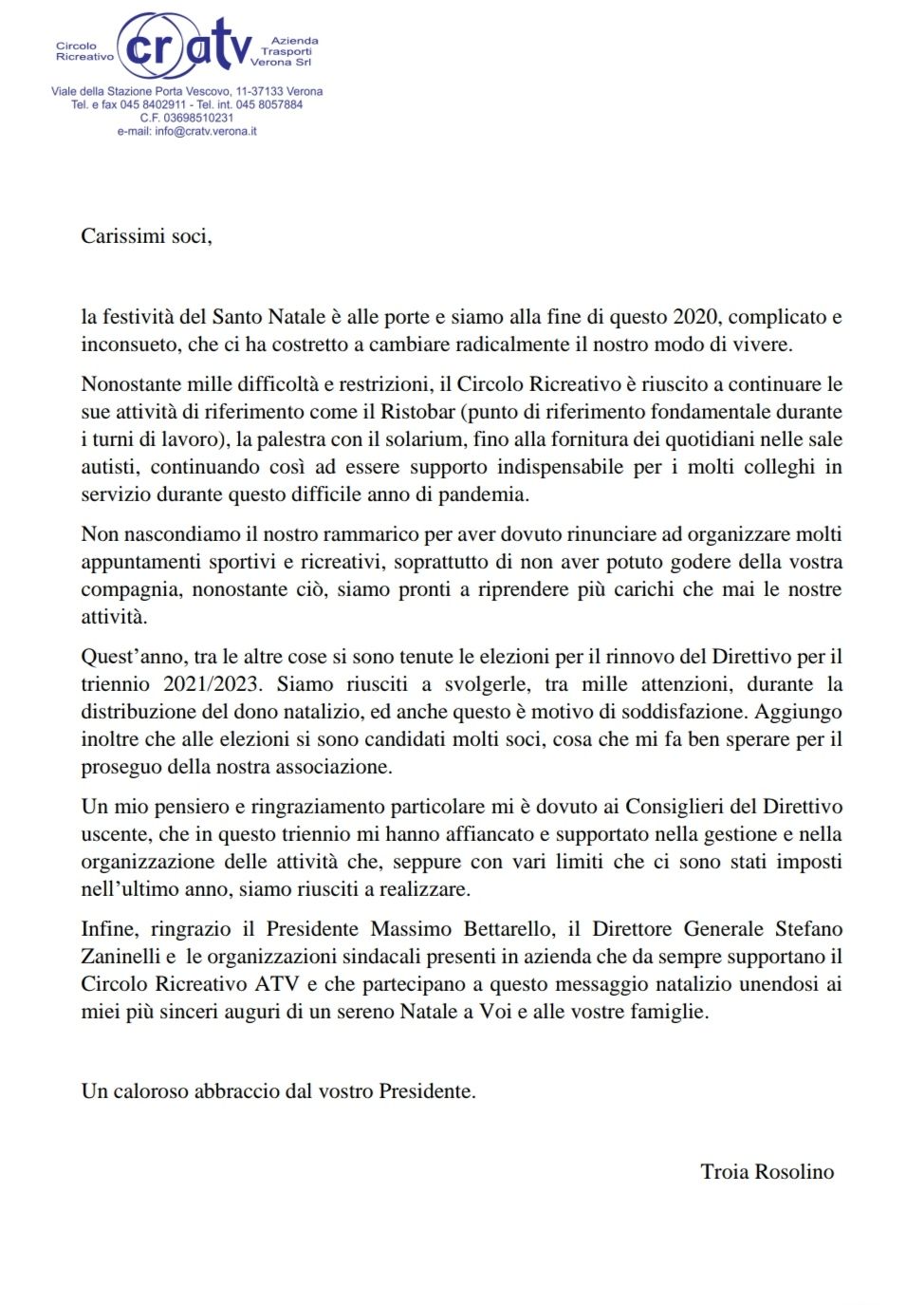 AUGURI DI NATALE DAL PRESIDENTE